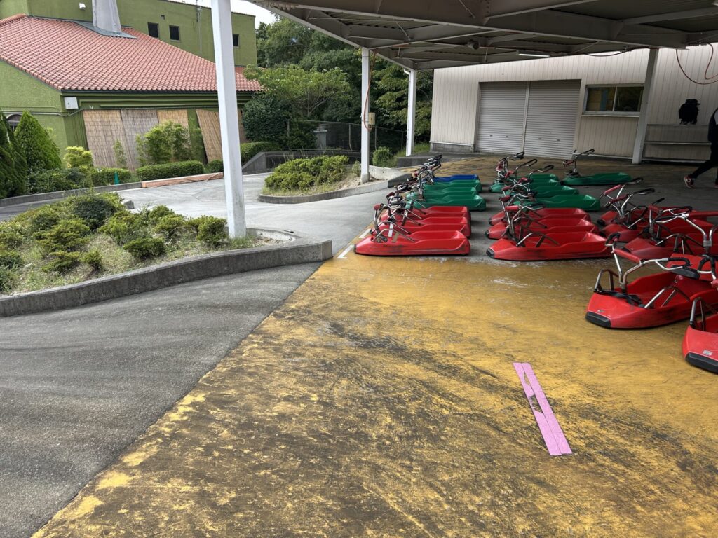 関西サイクルスポーツセンターに入って最初にあるアトラクションですね。ソリ?に乗って坂道を下るのですがスピード感もあって楽しいです!お子様と2人乗りもできるので一人では操縦が難しいお子様も楽しむことができます!名前はサイクルリュージュですが自転車をこぐ要素は一切ありません(笑)冬のスポーツのリュージュですね!