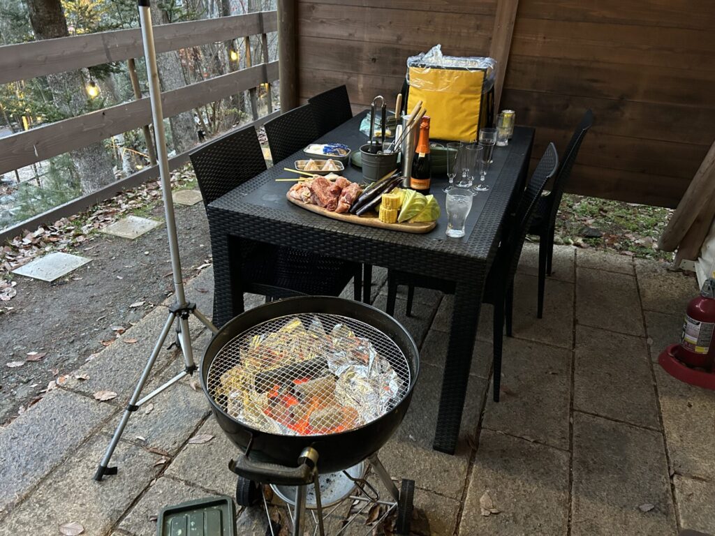 専用のBBQスペースはこんな感じです。専用のグリルがあってスタッフさんが火を付けるところまで準備してくれます。