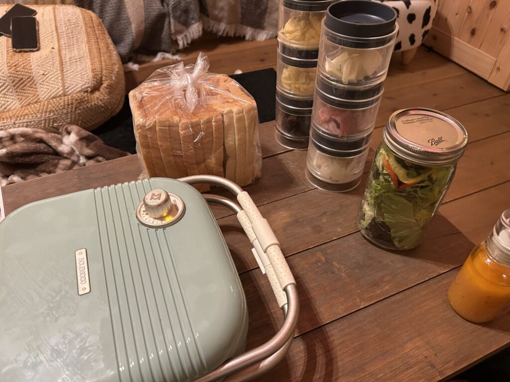 こんな感じで具材がきれいに分けられています!ホットサンドも食べきれないぐらいの量で作って持って帰りました!