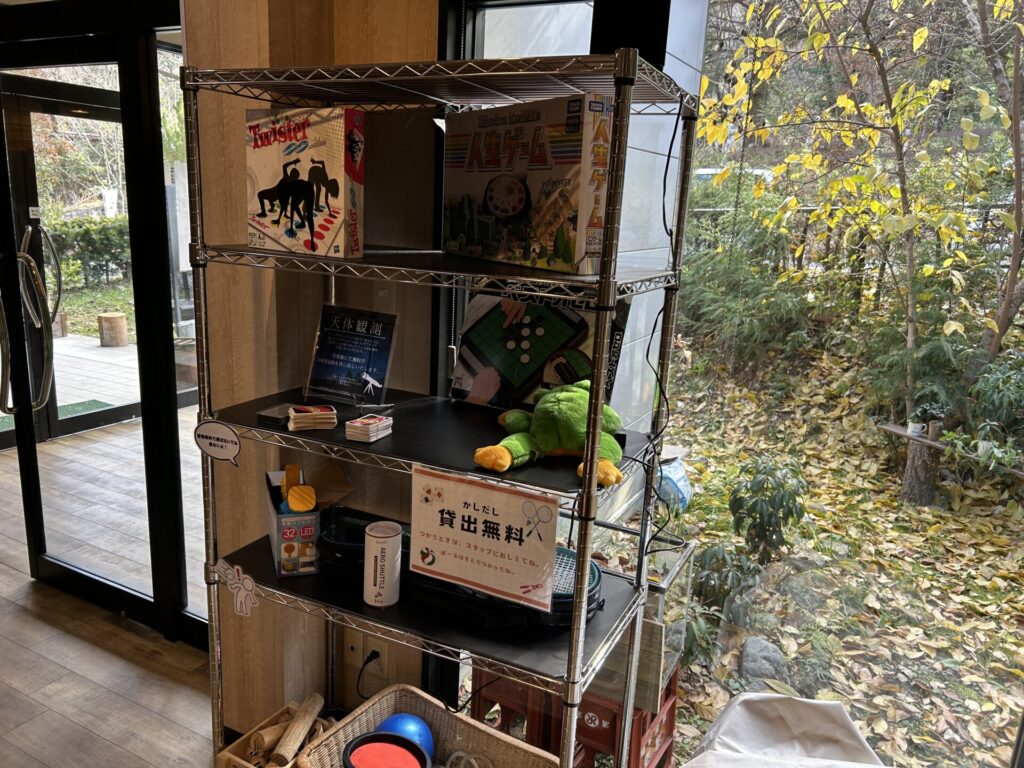 こちらは無料貸し出しのコーナーです!お部屋にテレビがないのでUNOなどのゲームをしたり、デジタルデトックスとまではいかないけれども子供たちとの時間を楽しく過ごすことができました!